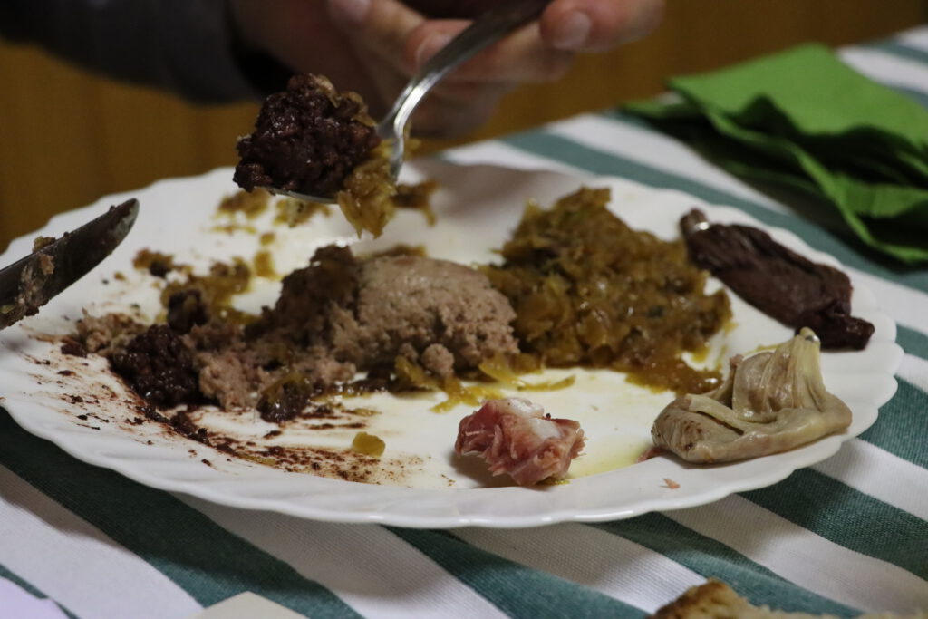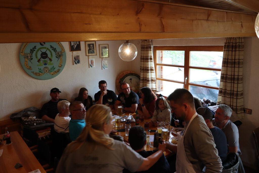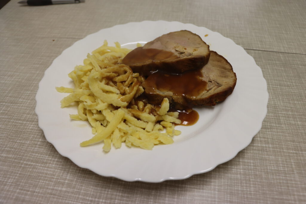 Für das leibliche Wohl war bestens gesorgt: Auf dem Speiseplan standen Schlachtplatte mit Kraut und Brot, Schweinbraten mit Spätzle sowie Zwiebelkuchen. Dazu wurden frisch gezapftes Fassbier und Neuer Wein ausgeschenkt.